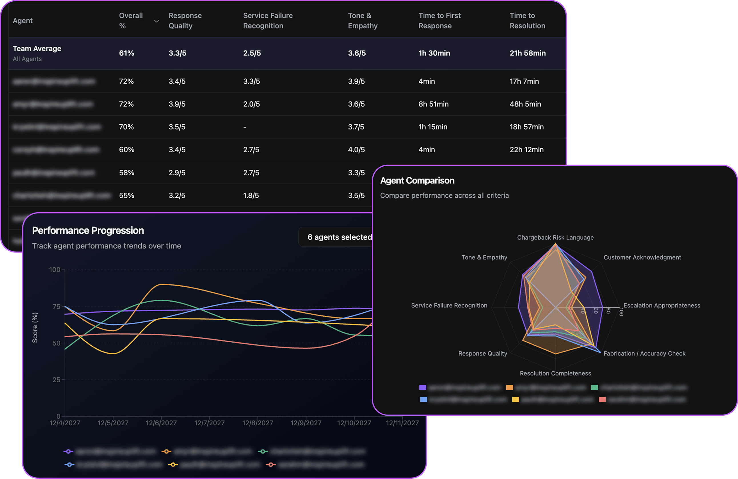 Define your quality criteria once, give support leaders full performance visibility, and help agents improve every ticket, without relying on 2% manual audits.