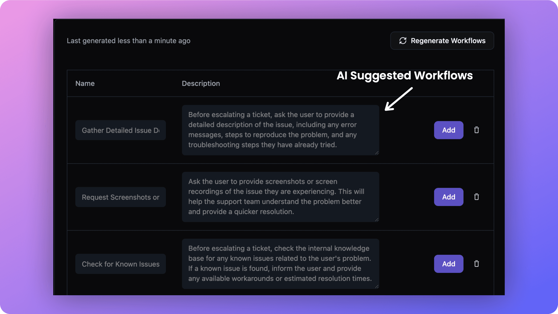 Finds inefficiencies in your support process and creates automated workflows to remove unnecessary manual steps.