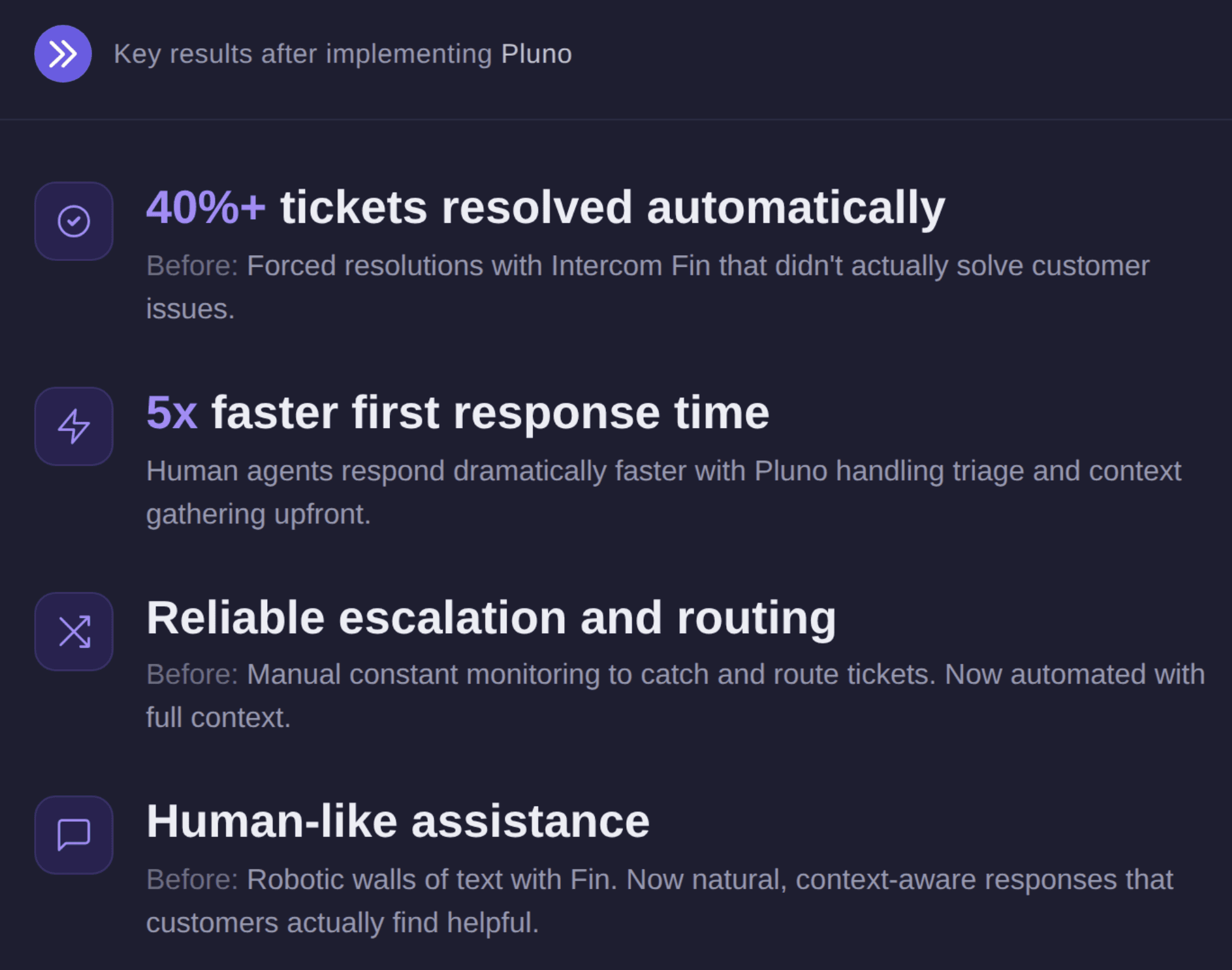 "I compared Pluno with Fin by Intercom, and Pluno was miles ahead!"