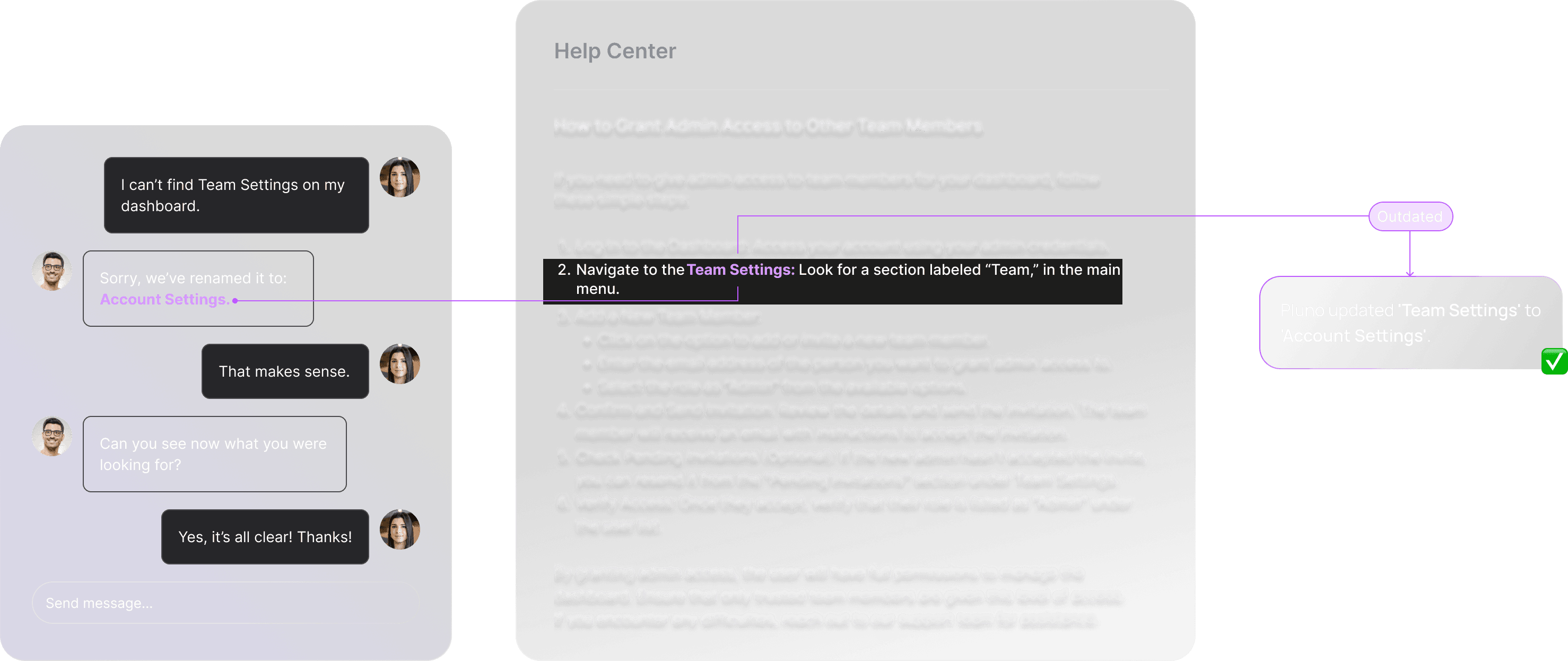 And if you’d rather not manage it yourself, we can even take care of keeping Pluno’s knowledge base up to date for you.